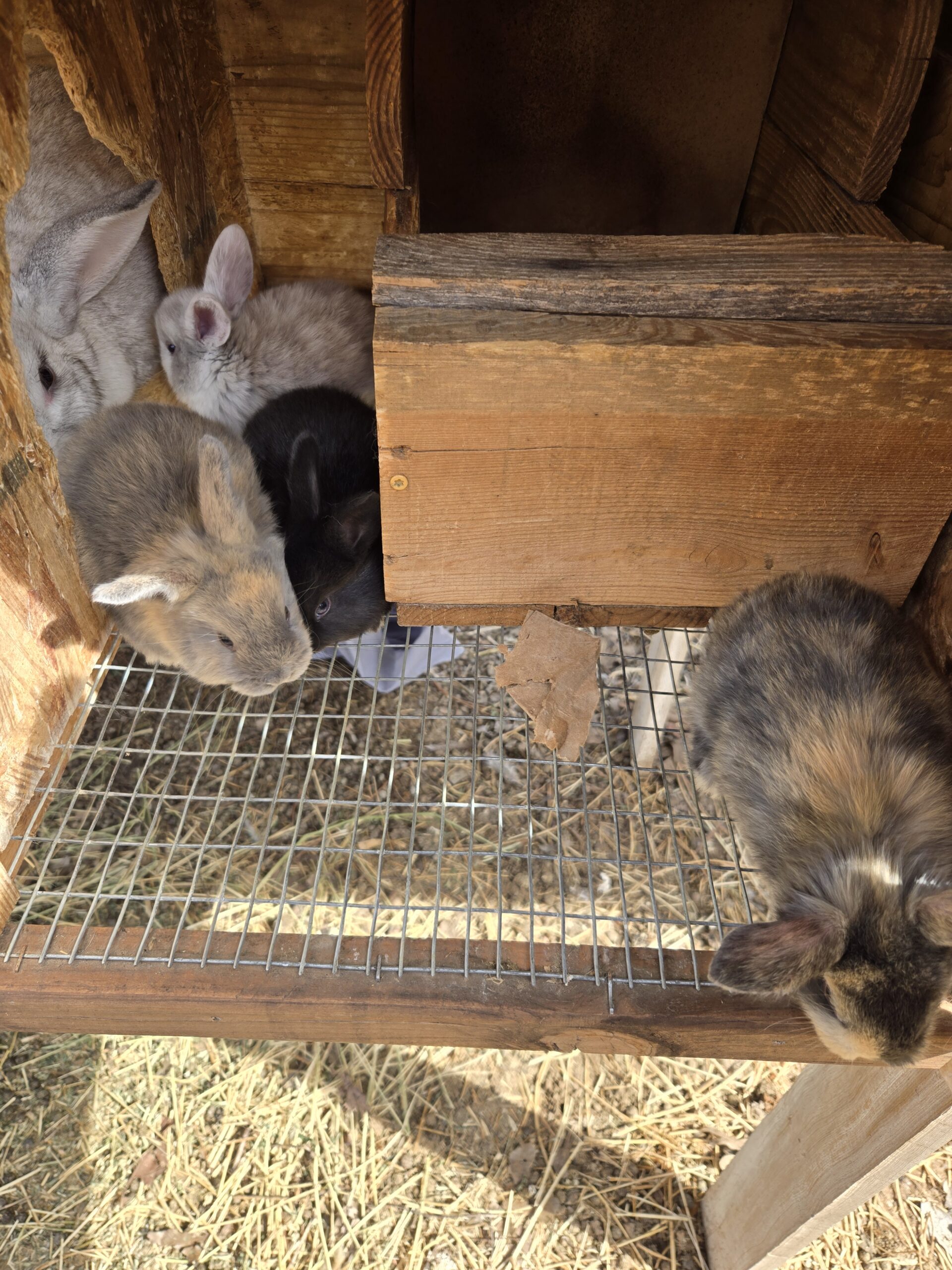 All our rabbits live in hutches rather than standard hanging cages, so they tend to me more comfortable and happy!